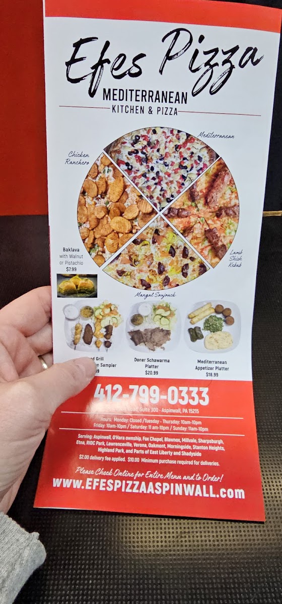 Welcome to Efes Mediterranean Pizza, a culinary gem located at 50 Freeport Rd #300 in Aspinwall, PA. This cozy restaurant captivates diners with a diverse menu that beautifully blends Mediterranean flavors and classic pizza recipes.