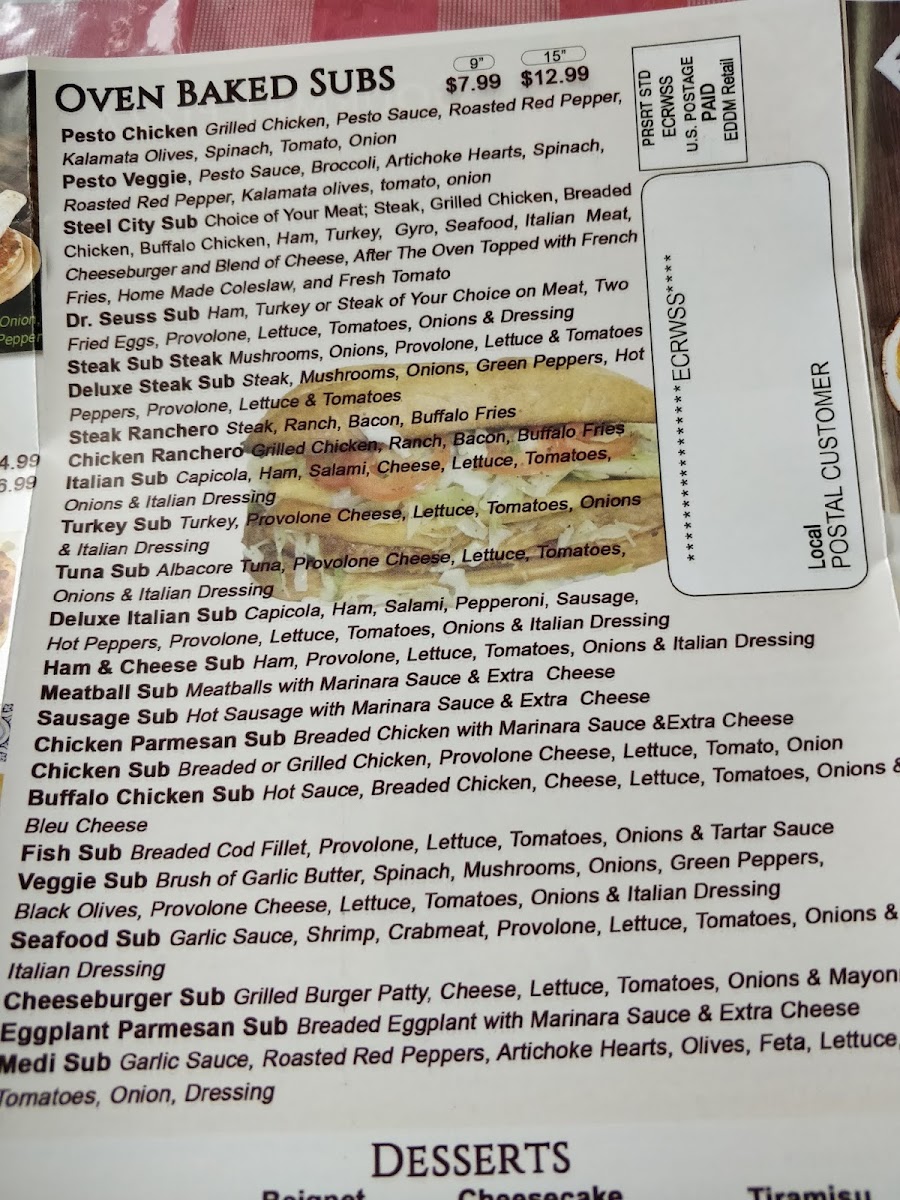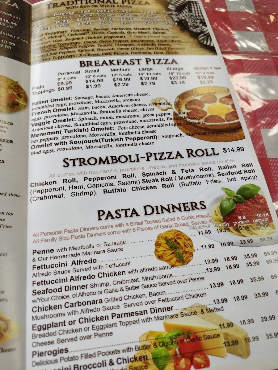 Spinach, onion, mushroom, green pepper, tomato, American cheese, scrambled eggs, provolone, mozzarella,
